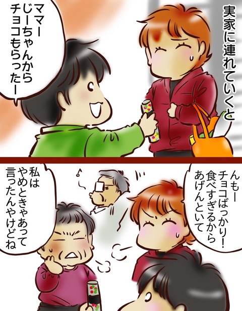 そこは子ども、自分で「じーちゃんにチョコもらった!」と報告してきます。