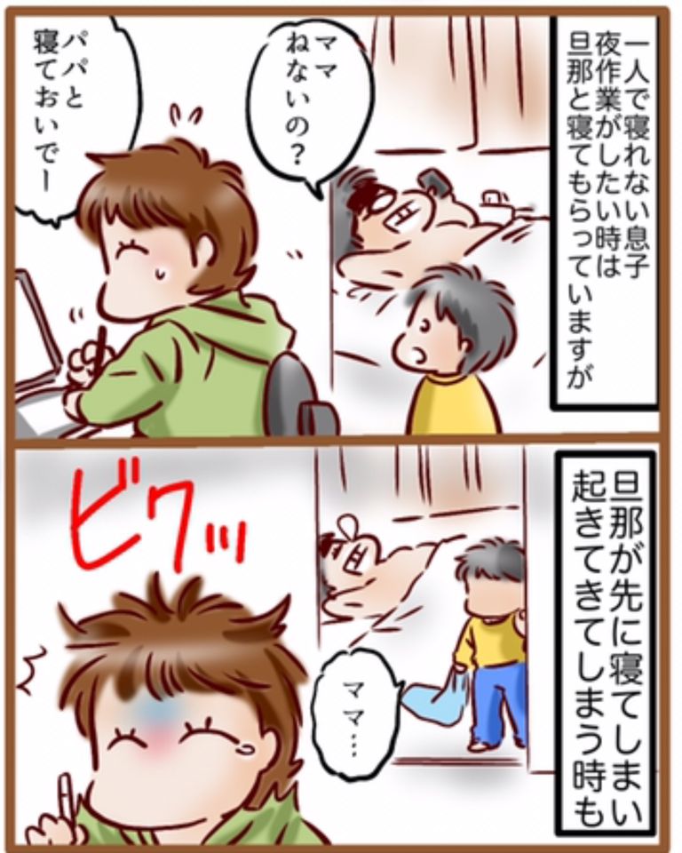 「ママと寝られない」のなら、「ママが漫画描くのは嫌だ」となったみたいです。