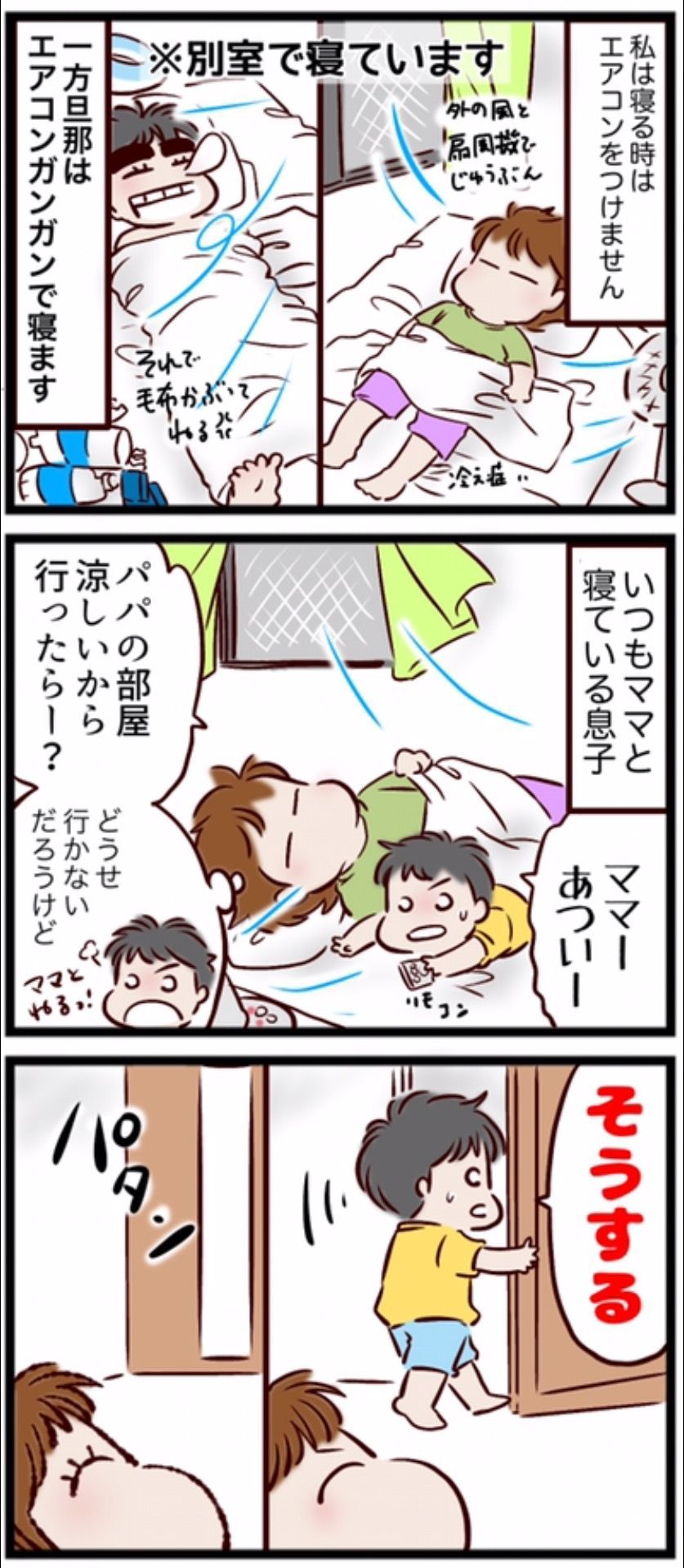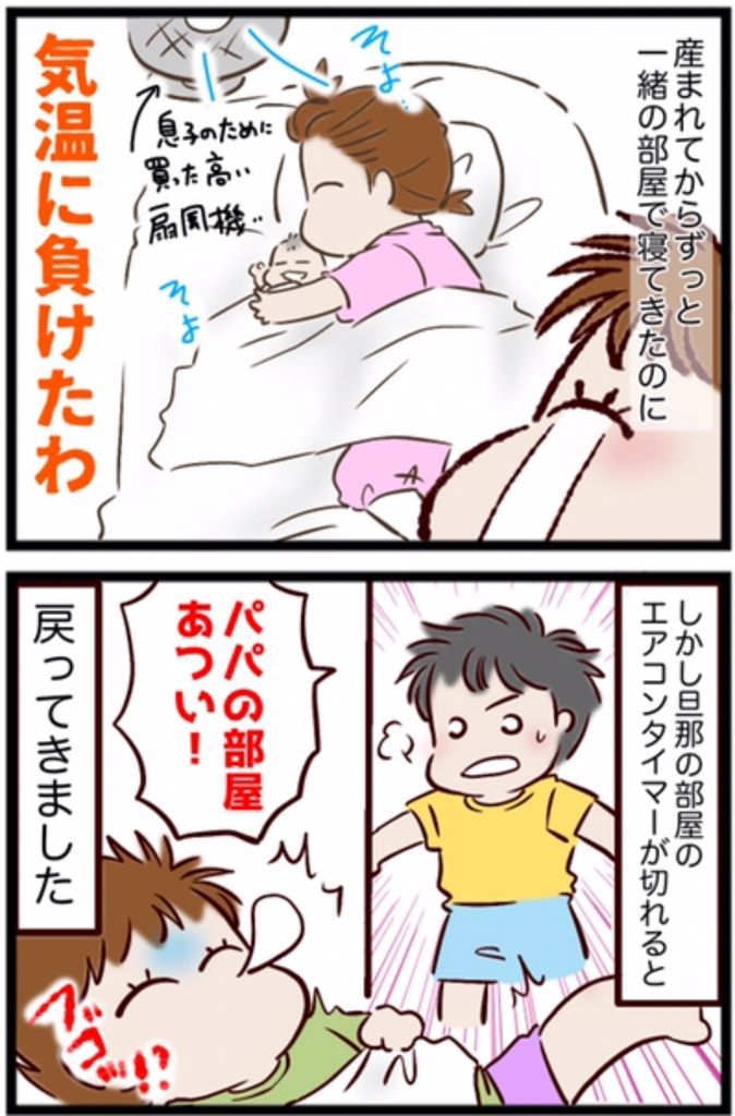 基本的に私の部屋で寝る息子ですが、夏の暑さで事情が変わると…!?