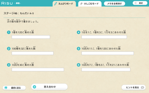 大きい数字なので、0を数えるのは大変だけれど、タブレットなので何回もやり直しができますね!