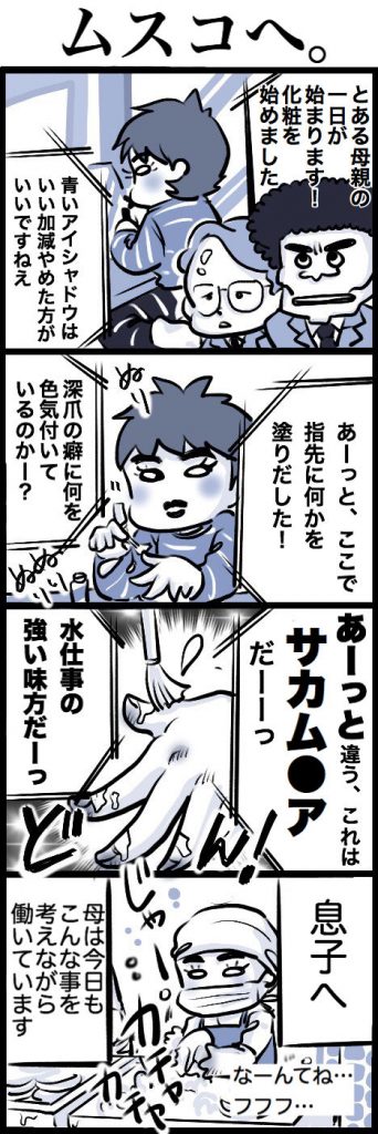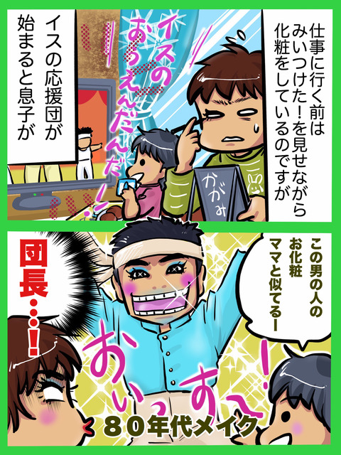 イスの応援団長と濃い化粧(四コマ漫画+2コマ漫画)