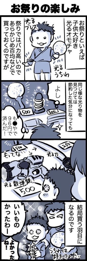 お祭りと息子(四コマ漫画+イラスト一枚)