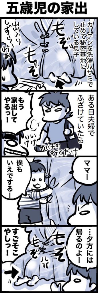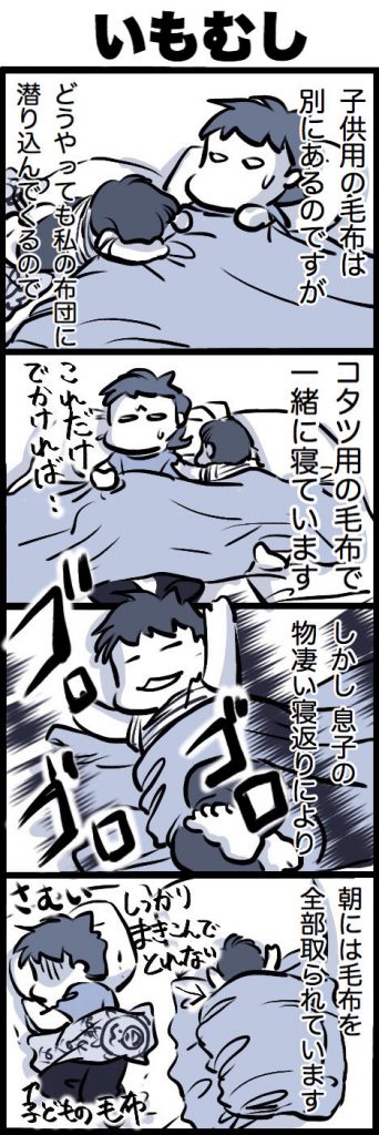 毛布を取られる話と秘密基地に家出する息子(四コマ漫画二本)