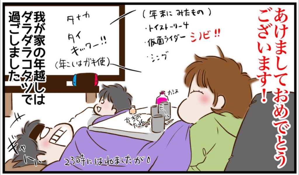 年末の買い物や手伝いなども終え、夜はゆっくりコタツでテレビを見て過ごしました。