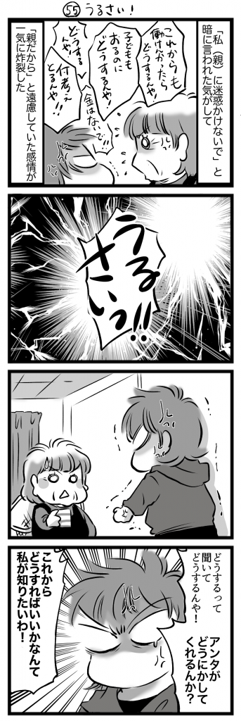 もういい、親だから優しくしてもらえると思って、言った私がバカだったのだ。