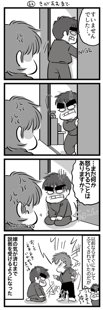 こちらが静かに伝えた事で、夫も「やっちまった…」と静かに反省しました。その後、いつものように部屋に籠って逃げようとしたのですが…。