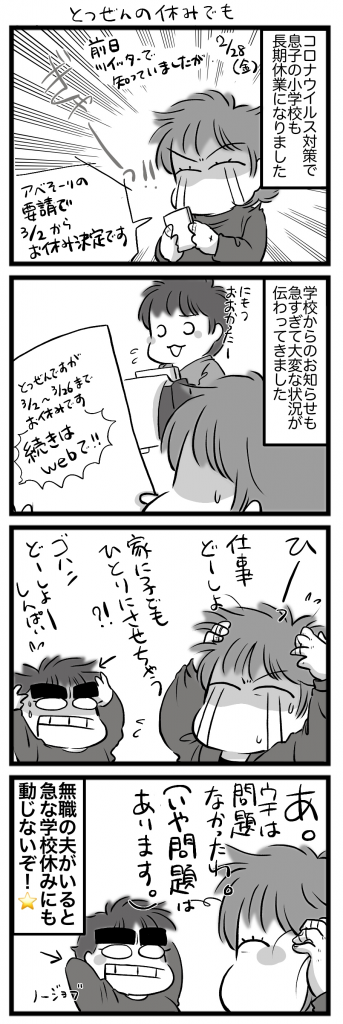 【旦那が無職になった時2】番外編① コロナウイルスで突然の休みでも!