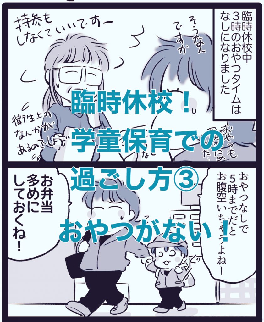 急な休校により、プリントを用意する間もなくバタバタの学童初日、いつもの長期休業の時のように自宅からお菓子を持っていったのですが…。