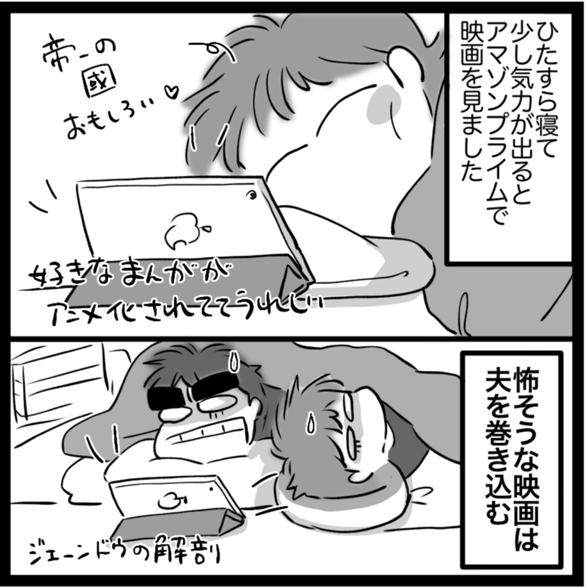 夫を巻き込み、ホラー映画?にもチャレンジ!一人では絶対見られない映画も知る事ができました。