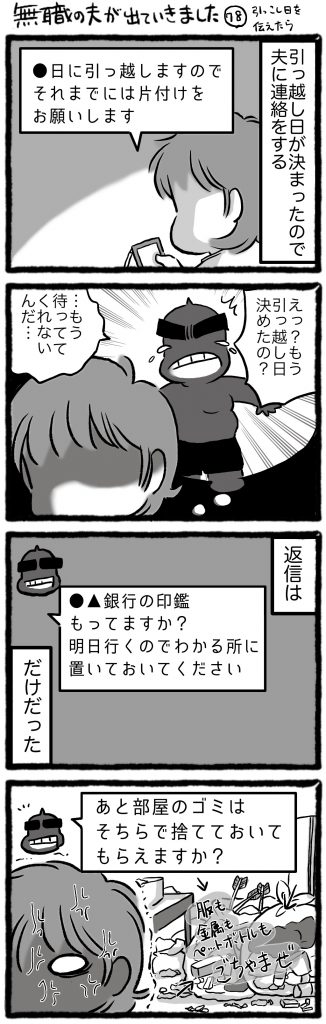 「無職の夫が出ていきました」 78 引っ越し日を伝えたら