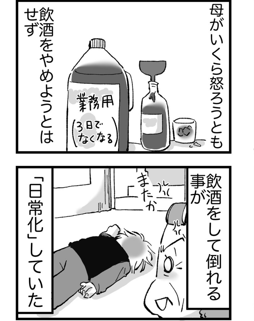 何度も入院し、退院後しばらくは大人しくしていても、またすぐにお酒を飲みだす父。タバコは辞められましたが、お酒だけは辞められませんでした。
